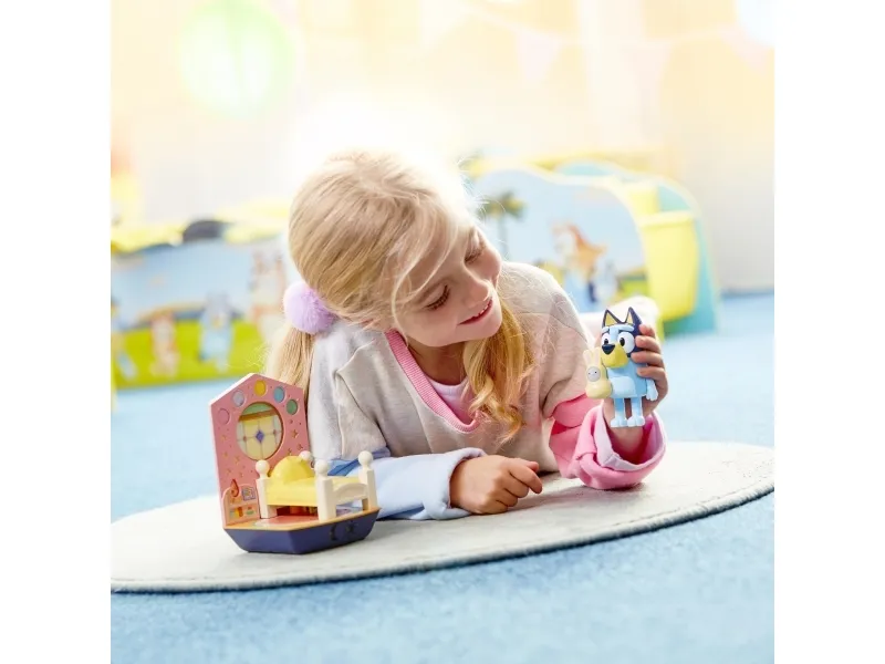 Når det er tid for dit barn at gå i seng, skal du lægge Bluey i lampens seng for på magisk vis at lyse med et varmt glødende natlys, der svinder ud efter 10 minutter.