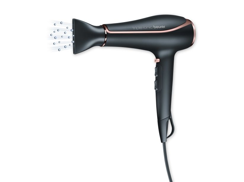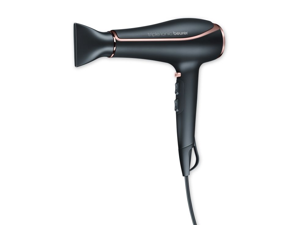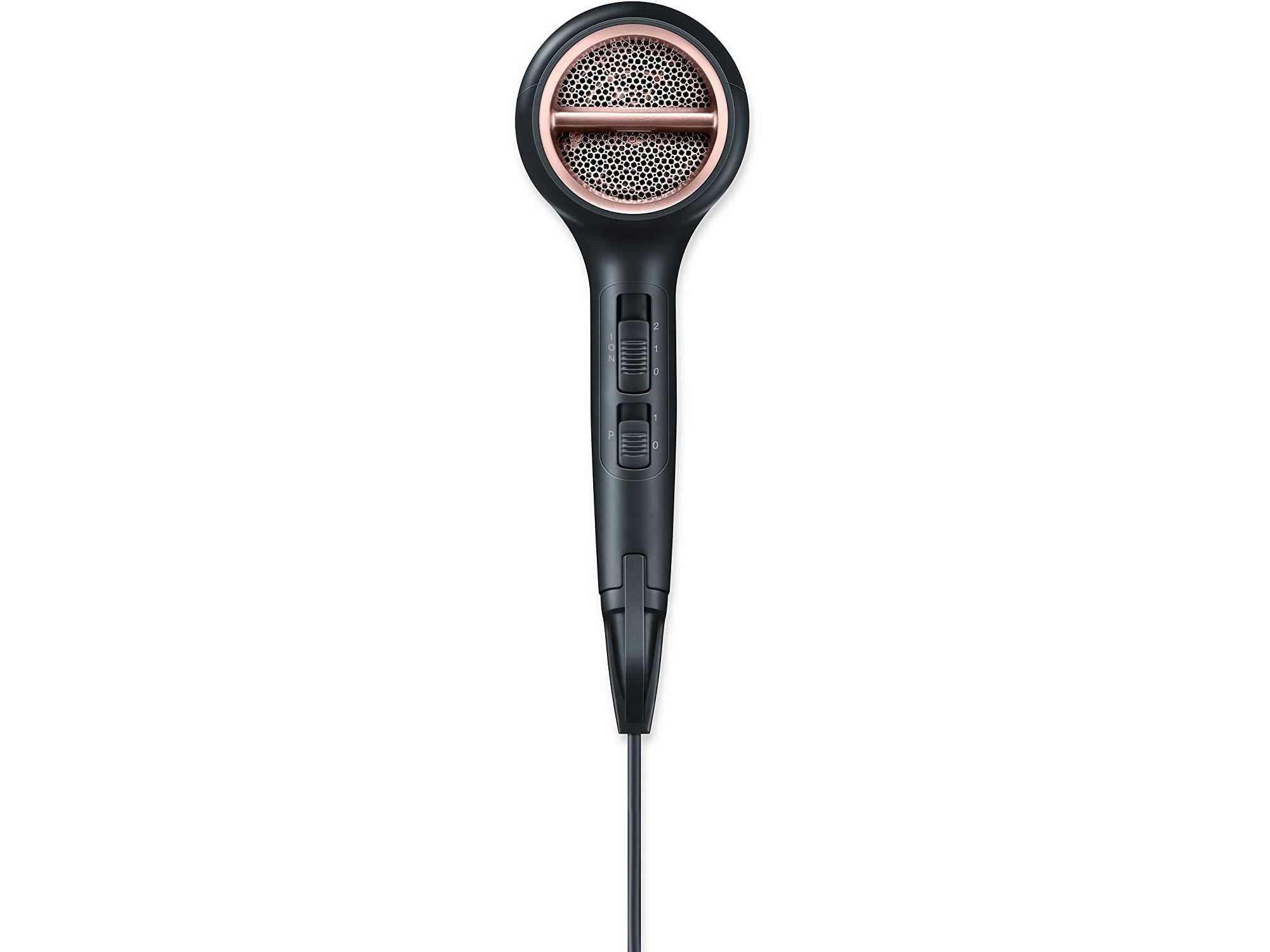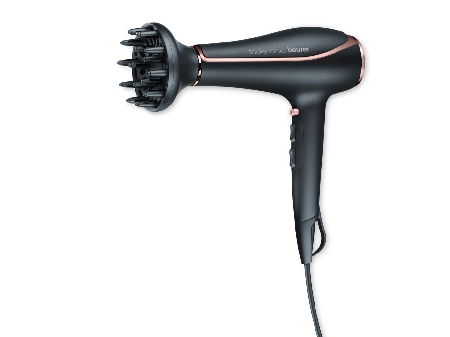 HC 80 Hårtørrer med professionel AC motor; kraftigere motor med længere levetid. 2200 watt. Ionfunktion i 2 trin. 3 varmeindstillinger. 2 hastigheder. Låsbar koldluftsfunktion. Beskyttelsesfunktion. Inkl. fønnæb og diffuser.