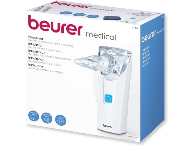 IH 55 Transportabel forstøverapparat med netforstøvning. Til forstøvning af flydende medikamenter til luftvejene. Let at håndtere, ideel til børn og velegnet til rejsebrug. Lydløs, hurtig og effektiv inhalation. > 0,25 ml/min. Kan desinficeres. Har selvrensende funktion. Leveres med mundstykke samt voksen- og børnemaske.