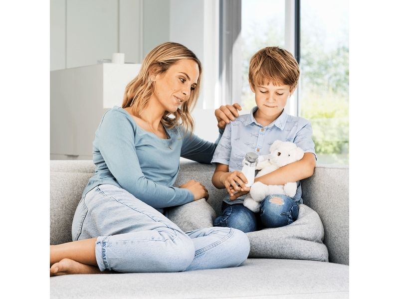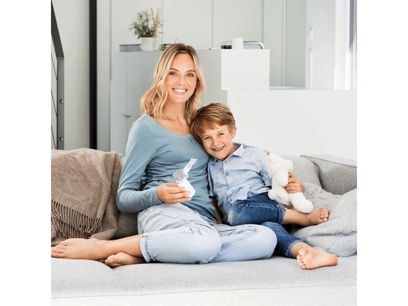IH 57 Inhalator med netforstøvning. Til forstøvning af flydende medikamenter til luftvejene. Let at håndtere, ideel til børn og velegnet til rejsebrug. Intelligent aerosol teknologi - forstøver kun ved indånding. Lydsvag, hurtig og effektiv inhalation. > 0,2 ml/min. Fleksibel rotation (up til 45 grader). Kan desinficeres. Har selvrensende funktion. Litium-ion batteri - op til 3,5 timers brug på fuld opladning. Leveres med mundstykke samt voksen- og børnemaske. USB-kabel medfølger.