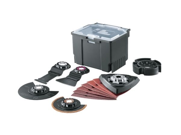 Starlock-sæt Universal. Starlock-sæt med 12 dele. Dette sæt indeholder: AIZ 32 APB, AVZ 93 G, 6 x Best for Wood and Paint, ACZ 85 EC, ACZ 70 RT5 og ATZ 52 SC.