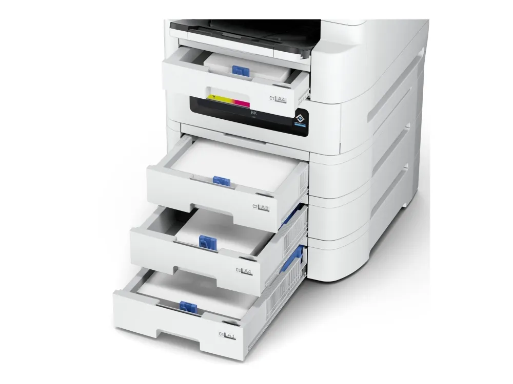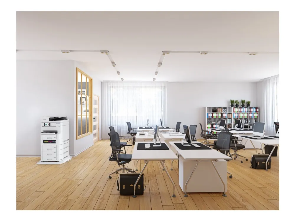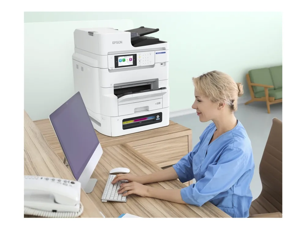 Epson WorkForce Pro EM-C8101RDWF tilbyr allsidig og effektiv funksjonalitet for alle kontormiljøer. Med muligheten til å skrive ut, kopiere, skanne og fakse, integreres den i den daglige driften og sikrer høy produktivitet. Denne multifunksjonsskriveren er utstyrt med en brukervennlig berøringsskjerm og er optimalisert for både store og små utskriftsjobber. Den oppnår en eksepsjonell utskriftsoppløsning på opptil 4800 x 1200 DPI i farger og svart-hvitt, og leverer skarpe og levende dokumenter.
