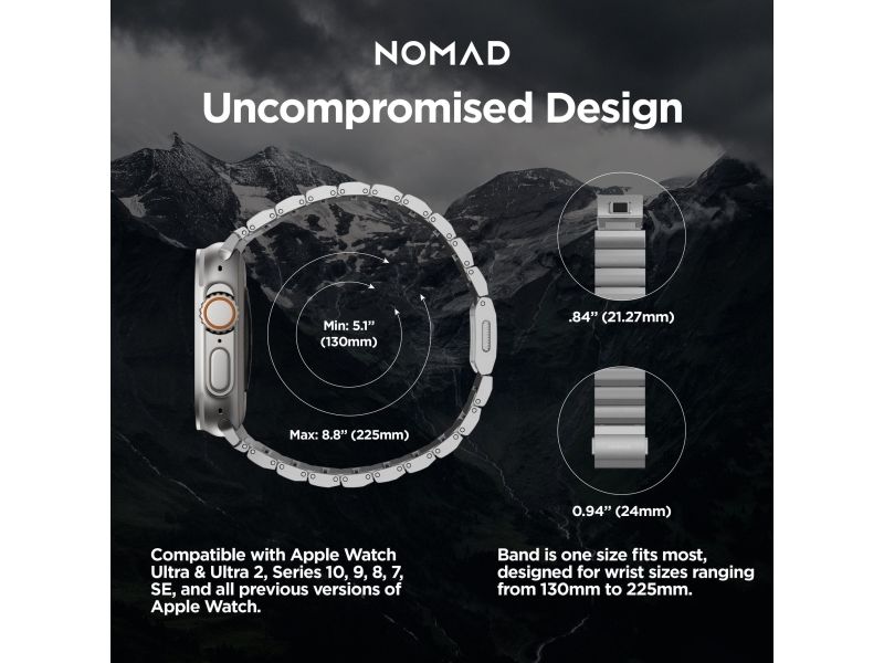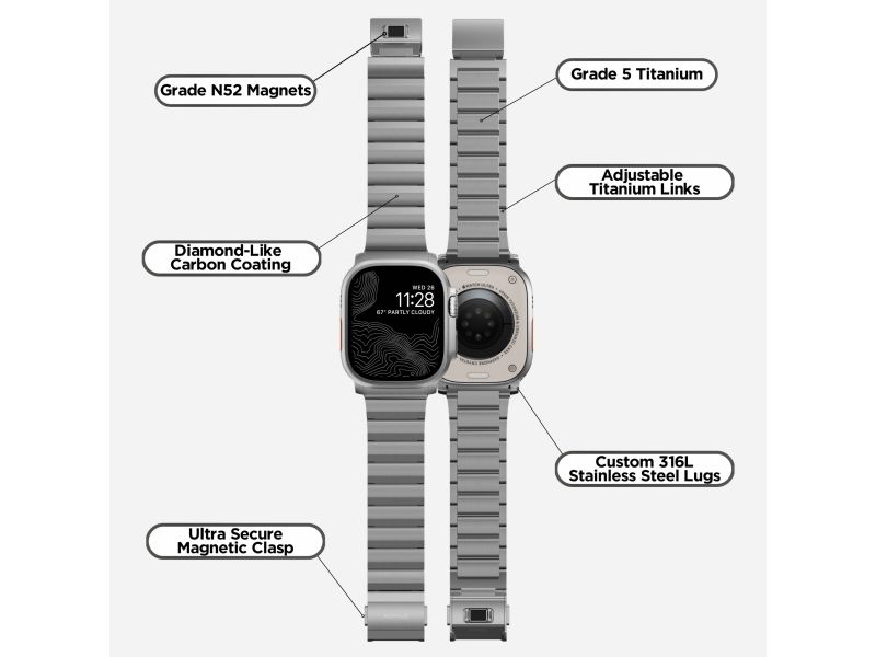 Nomad Titanium Band, Band, Smartklokke, Naturlig, Apple, Ultra / 46mm, Titan