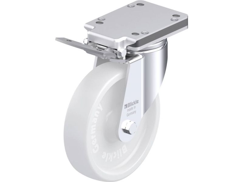 Styrehjul af stålplade, tung udførelse, med påskruningsplade, med bremse 'perfekt stop',