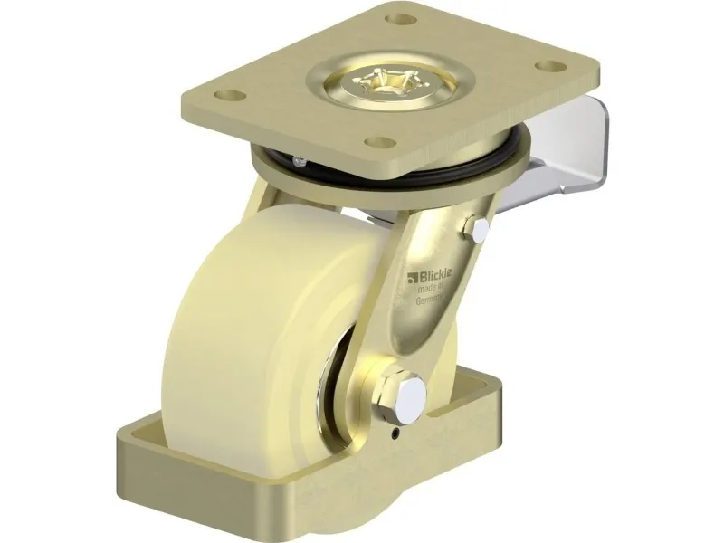 Styrehjul til tung last LS-GSPO 125K-ST-FS Stålsvejst tunglast-styrehjul, kraftig drejekrans-udførelse, med fastregulator top-top, med fodbeskyttelse af stål, Hjul af støbt polyamid til tung last