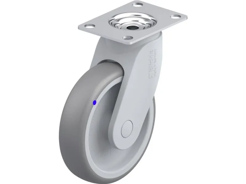 Drejeligt hjul Blickle FLOW, rustfri, farve sølvgrå, med påskruningsplade,