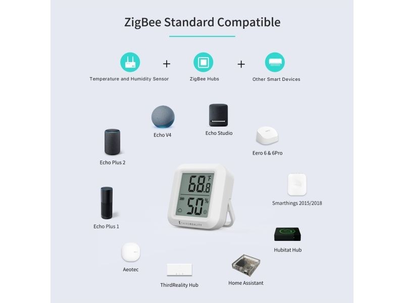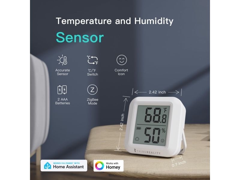 THIRDREALITY Zigbee Temperature and Humidity Sensor with Digital LCD Display, Requires ZigBee Hub, App Records, Smart Thermometer Hygrometer for Remote Monitoring and Home Automation