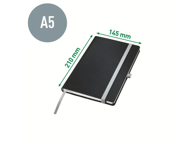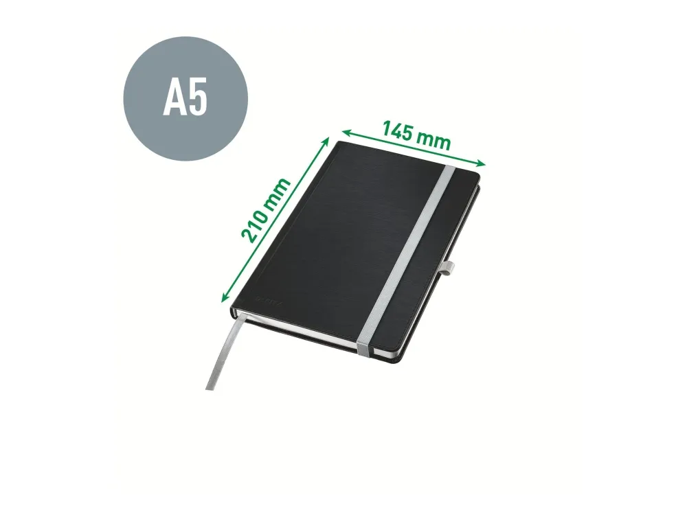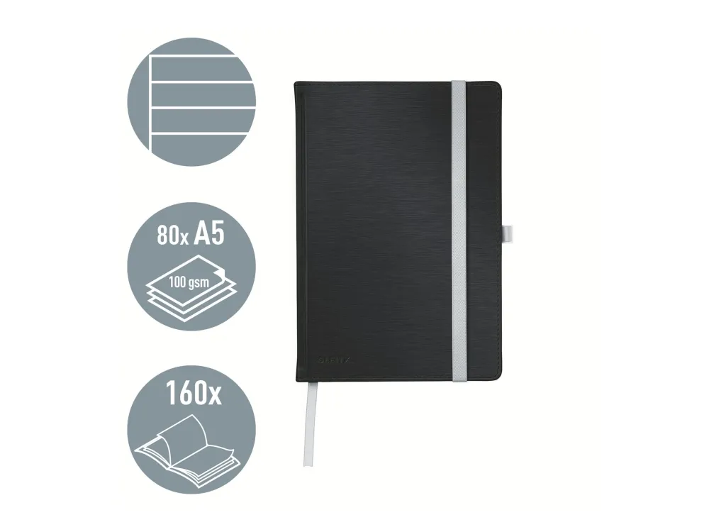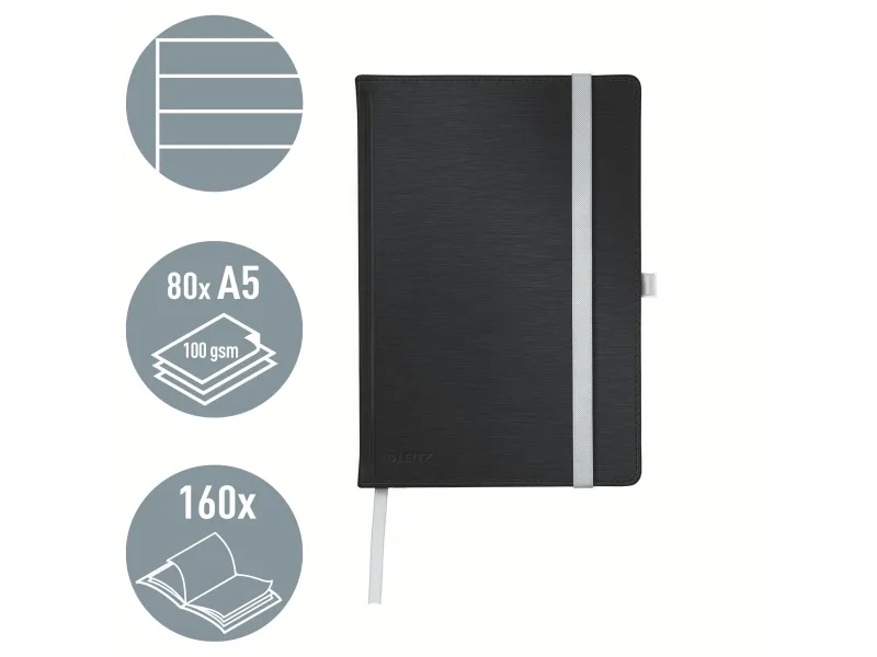 Leitz Style - Notisbok - eskebundet - A5 (145 x 210 mm) - 80 ark / 160 sider - elfenbenspapir - lined - satengsvart omslag