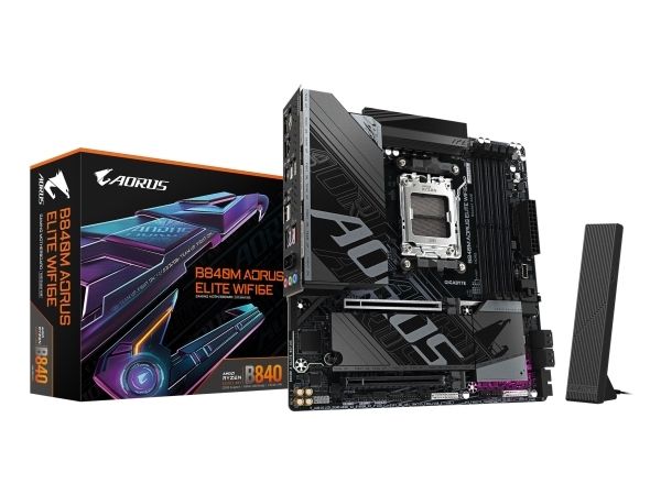 AORUS B840M ELITE WIFI6E - Hovedkort - micro ATX - Socket AM5 - AMD B840 Chipset - USB 3.2 Gen 2, USB-C 3.2 Gen 1, USB 3.2 Gen 1 - Wi-Fi 6E, 2.5 Gigabit LAN, Bluetooth - innbygd grafikk (CPU kreves) - HD-lyd (8-kanalers)