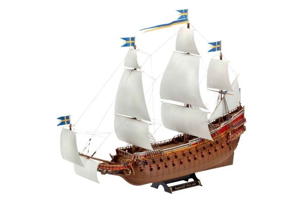 Modelbyggesæt fra imponerende svensk Vasa. 1625 bygget som flagskib sank den i 1628 ved nyfart. I 1961 blev den i dag vist på Vasa-museet i Stockholm. Det 69 meter lange skib med 72 kanoner imponerer med tidskrævende pynt og rig historie. - Detaljeret skrog med mange strukturer og dekorationer - dæk med træstruktur og lukken - rig på ekstra hækspejl med mange skulpturer - displaylande