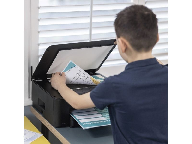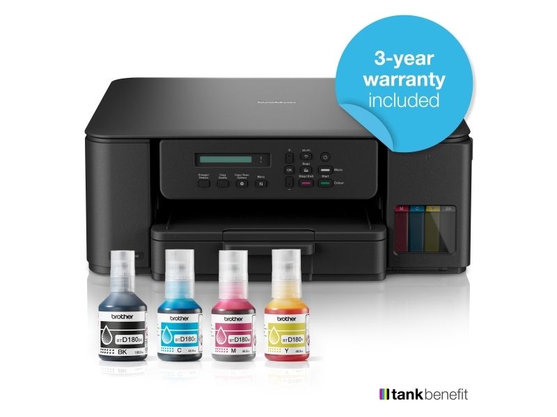 | • Print op til 16 billeder pr. minut (ISO/IEC 24734) • Automatisk dobbeltsidet print. • LCD-display med 1 linje • 5GHz wi-fi og USB • 150-arks papirskuffe og manuel arkføder - 1 ark • Leveres med flasker til 7.500 sider i sort og 5.000 sider i farver |