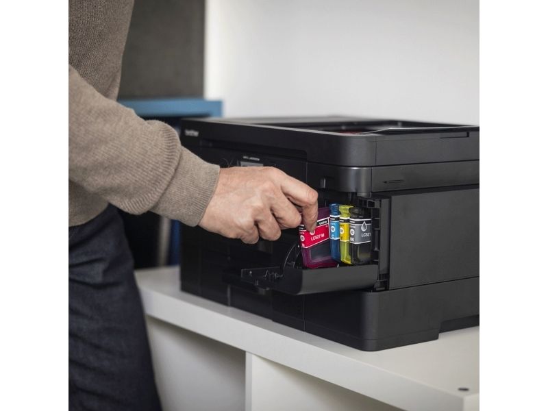 Brother MFC-J4550DW tilbyr allsidig funksjonalitet som muliggjør sømløs faksing, kopiering, utskrift og skanning. Med trådløse tilkoblingsmuligheter, inkludert USB 2.0 og Wi-Fi Direct, kan brukerne enkelt skrive ut og dele dokumenter fra sine mobile enheter eller datamaskiner. Den automatiske dupleksfunksjonen øker effektiviteten ved å muliggjøre tosidig utskrift og kopiering, noe som sparer både tid og papir. Et brukervennlig berøringsskjermgrensesnitt forenkler navigasjonen, noe som gjør det enkelt å få tilgang til ulike funksjoner og innstillinger. Denne multifunksjonsskriveren er utstyrt for å håndtere en rekke medietyper og -størrelser, fra konvolutter til fotopapir, og har kapasitet på opptil 2000 sider i måneden. Høy kvalitet på utskrift og kopiering oppnås med en maksimal oppløsning på opptil 1200 x 4800 DPI for farge og 1200 x 2400 DPI for svart-hvitt. Med omfattende sikkerhetsprotokoller sørger Brother MFC-J4550DW for at sensitive dokumenter holdes trygge, noe som gjør den til et pålitelig valg for både hjemmet og kontormiljøer.