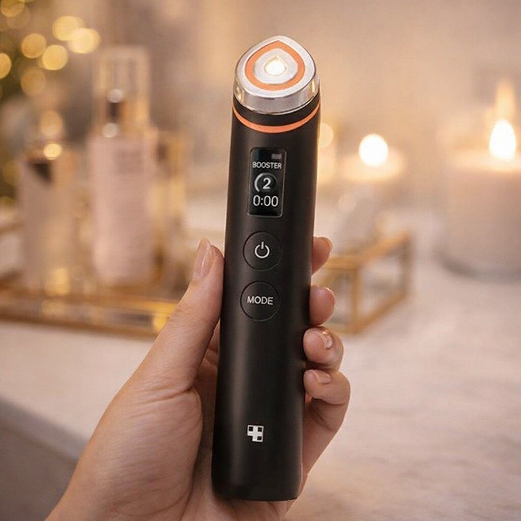 | Medicube Age-R Booster Pro Ex Black er en avansert ansiktsbehandling med elektroporering, mikrostrøm og EMS-teknologi. Den forbedrer hudens glød, fasthet og produktabsorpsjon, og reduserer fine linjer. En effektiv hjemmebehandling for en fastere, glattere og jevnere hud. Den elegante svarte versjonen gir et eksklusivt og moderne utseende, samtidig som den leverer effektiv hudpleie på høyeste nivå. Hva kan den gjøre? ✔ Øker hudens glød og forbedrer produktabsorpsjonen ✔ Stimulerer huden med mikrostrøm for fastere konturer ✔ Bidrar til å redusere fine linjer ✔ Forbedrer hudens elastisitet og fasthet ✔ Støtter en jevnere og glattere hudtekstur |