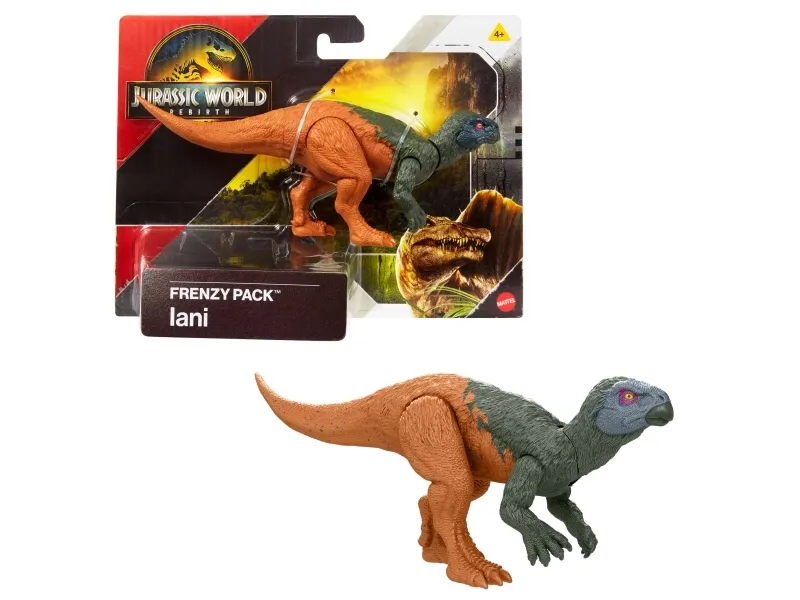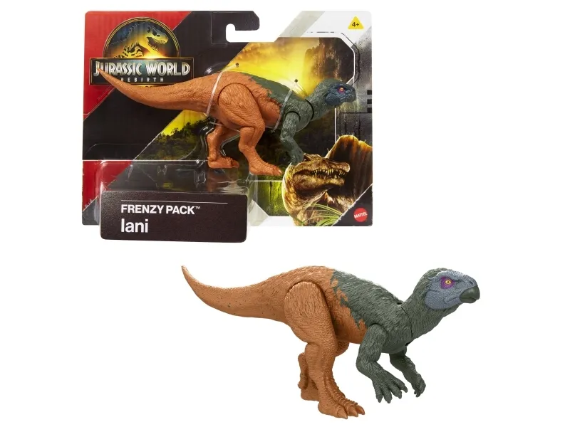 These Frenzy Pack dinosaurs inspired by Jurassic World Rebirth are known to herd, hunt and attack in packs. Choose from carnivores and herbivores, with movable joints, realistic sculpting and authentic decoration. Ready for play or display by fans ages 4 years and up. Scan the Tracking Code on the dinosaur's foot in the free Jurassic World Play App with a compatible smart device (Android or iOS, not included) to unlock a digital version of the dinosaur and play the fiercely fun game to race various vehicles on land, air and sea. Colours and decorations may vary.Jurassic World Rebirth Frenzy Pack Iani Dinosaur Figure, Authentic Toy, Digital Play. Recommended age (min): 4 yr(s), Product colour: Multicolour