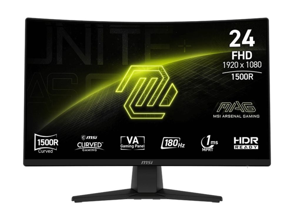 The MSI MAG 242C is a sleek 24-inch desktop monitor designed to elevate your viewing experience. With a Full HD native resolution of 1920 x 1080 and a V-Sync rate of 180 Hz, it ensures smooth and vibrant visuals, making it an option for both gaming and multimedia consumption. The anti-glare coating coupled with a brightness of 300 cd/m2 and a dynamic contrast ratio of 100000000:1 provides stunning clarity and vivid colors across the screen. The curved 1500R design enhances immersion, offering horizontal and vertical viewing angles of 178 degrees, allowing for comfortable viewing from various positions. Additionally, features such as HDR Ready technology, AI Vision, and Less Blue Light technology make it suitable for long hours of use without eye strain. This monitor also includes practical characteristics, like tilt adjustment ranging from -5 to +20 degrees to match individual preferences. With input options including HDMI and DisplayPort, and features like KVM and console mode, the MAG 242C adapts easily to various setups and usage scenarios. The 5-way joystick for easy navigation through the on-screen display adds to the user-friendly experience. Whether working, gaming, or streaming, the MSI MAG 242C is crafted to meet the diverse needs of users looking for quality and style.