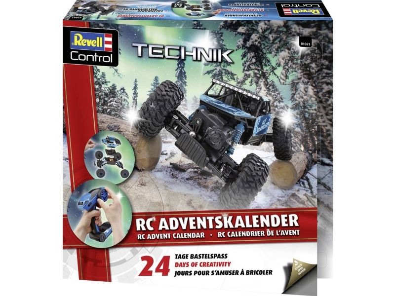 Denne advent julekalender giver Revell Control RC Crawler utæret køreglæde direkte derhjemme! I 24 spændende byggetrin kan du spektakulær 1:18 model, som gør det muligt at forstørre børns hjerter fra 8 år. Med sit realistiske design og de store dæk er det klar til at erobre det mest udfordrende terræn. Oplys dine børns øjne, mens fascinationen af teknik og konstruktion kommer til at ske ved at skabe deres eget crawler!
