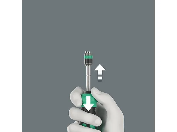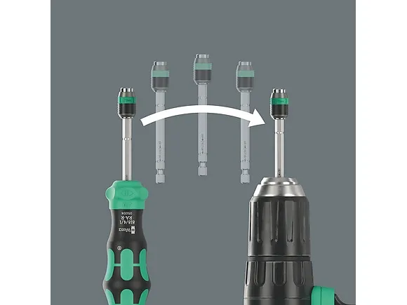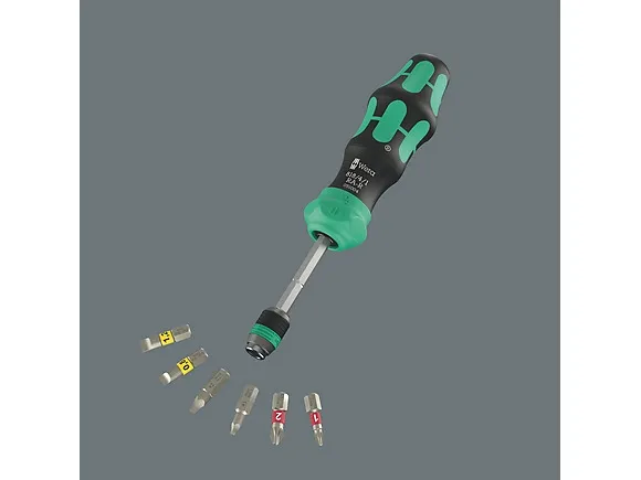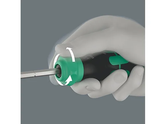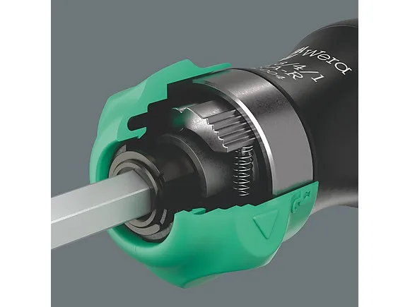Anvendelse: Egnet til bits med 1/4 udvendig sekskant iht. din ISO 1173-C 6,3 og E 6,3 Wera tilslutningsserie rækker 1 og 4 udførelse: Integreret skralde med fin fortanding, intuitivt skift, til præcist arbejde kan skraldemekanikken deaktiveres med 0-positionen