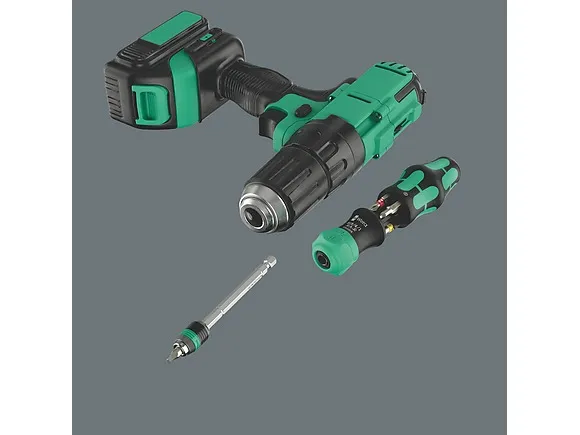 Forbindelsesdel, teleskopklinge, Rapidaptor-teknologi med Rapid-in, Rapid-out, Rapid-spin, chuck-all og single-hånd-funktion. 4 BiTorsion-bits til lang levetid, tandhård, til universel anvendelse. Take it easy værktøjsfinder: Med drev-farvemærkning og størrelsesstempel, så man nemt kan finde den ønskede bit, 2 bits, tandhård, til universel anvendelse. Håndtag: Kraftform med anti-skrid, flerkomponent, med integreret magasin