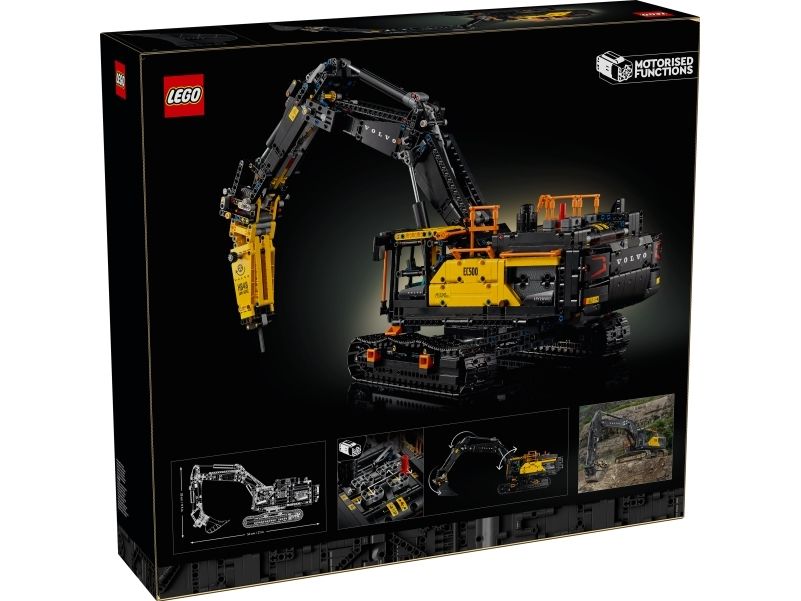 Motorisert LEGO® sett – denne LEGO gravemaskinmodellen er utstyrt med motor og girkasse med fire funksjoner, inkludert en bevegelig bom, arm og utskiftbar hammer og skuffe