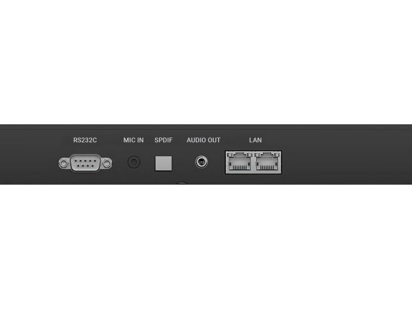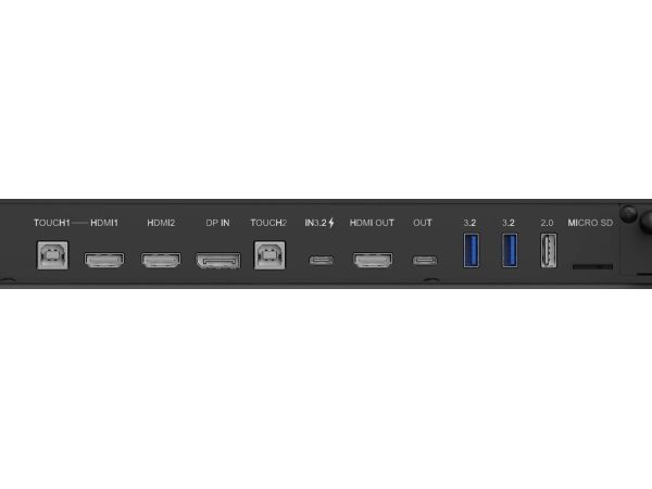 RS-232C-inngang Mikrofoninngang SPDIF-utgang 2 x HDMI-inngang HDMI-utgang DisplayPort-inngang Lydutgang 2 x Gigabit LAN USB 2.0 2 x USB 3.2 Gen 1 USB-C med DisplayPort 1.2 USB-C 3.2 Gen 1 med DisplayPort 1.2, data, berøring, 100W strømsending 2 x berøring