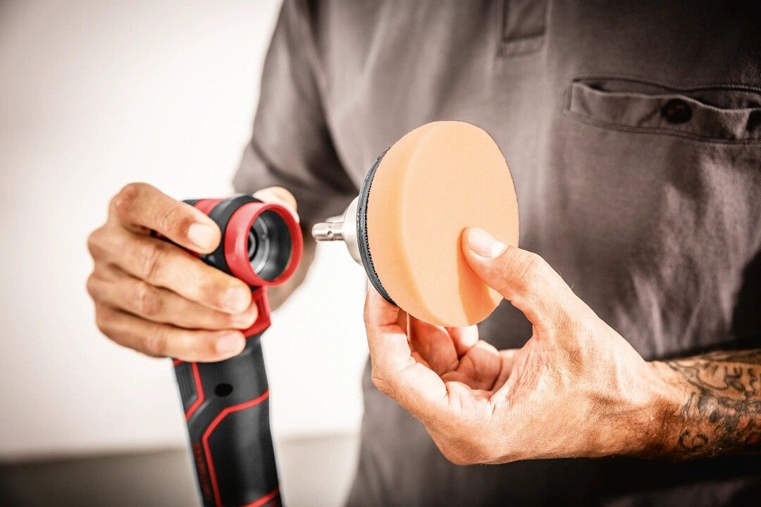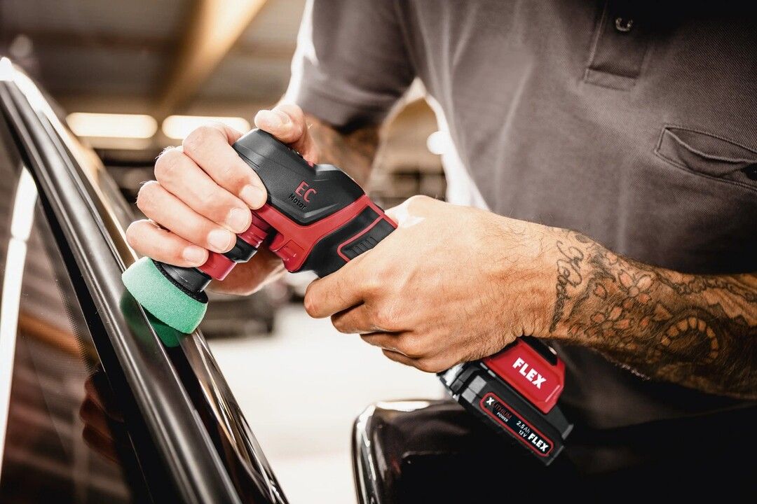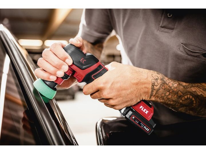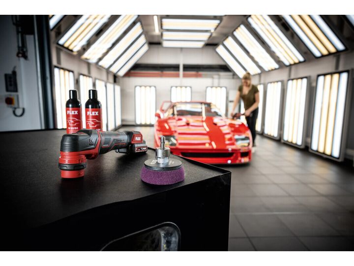 FLEX PXE 80 12-EC/2.5 SET er en kompakt og ekstremt allsidig 12 V batteridrevet poleringsmaskin for profesjonell bilpleie, punktreparasjon og lakkbehandling, hvor du kan veksle mellom roterende og fri eksentrisk bevegelse med 3 eller 12 mm oscillasjon med ett verktøy. Den innovative, verktøyfrie hurtigbytteadapteren gjør det raskt å veksle mellom polering og sliping, slik at du kan gå fra grov punktsliping til hologramfri etterbehandling på små overflater uten å bytte maskiner. Maskinen er utstyrt med en effektiv børsteløs motor for høyere effektivitet og lengre levetid, elektronisk motorstyring som beskytter maskinen og sikrer konstant hastighet under belastning, samt 4 hastighetsnivåer med tydelig LED-display og trinnløs hastighetsutløser for mykstart og full kontroll. Den lave vekten på bare 0,6 kg uten batteri, kompakte mål og myke gripeflater gir utmerket ergonomi og fleksibelt grep – perfekt for kanter, spoilere, speilhus og andre vanskelige områder. Vibrasjonene er optimalisert for mer komfortabel gange, den spesialfjærede borrelåsen og selvklebende pads bidrar til jevn kontakt med overflaten, og en integrert støtbeskyttelsesring beskytter både lakk og komponenter. Settet leveres komplett med roterende og eksentriske adaptere, polerings- og slipepads, 2 x 12 V, 2,5 Ah Li-Ion-batterier, hurtiglader og robust L-BOXX. FLEX 12 V-batterisystemet gjør maskinen kompatibel med alle FLEX 12 V-batterier – et ideelt valg for detaljhandlere, klargjøringssentre, bilverksteder og krevende gjør-det-selv-brukere som ønsker maksimal fleksibilitet i et mobilt, trådløst poleringssystem.