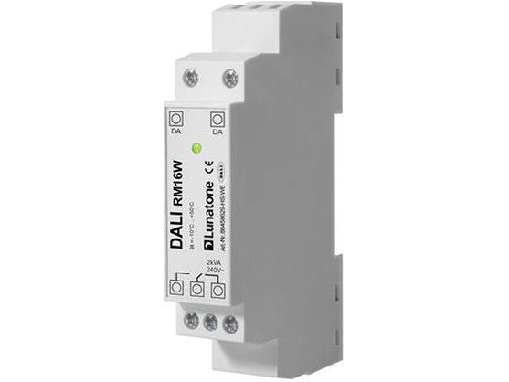 DALI relémodul med 16 ampere vekselkontakt - for on/off-styring av lyskilder eller 230V elektriske apparater - monteres på DIN-skinne