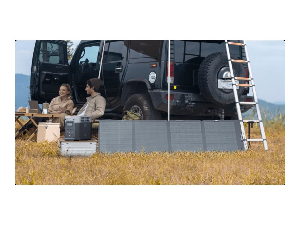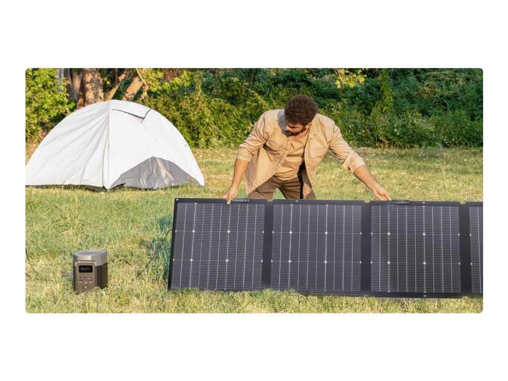 Thanks to its clever design, the panel folds up easily and doesn't take up much space - it will fit in a locker, camper or trunk. It only takes a few seconds to unfold it and start charging. The built-in universal solar connector allows it to work not only with EcoFlow stations, but also with most models on the market.