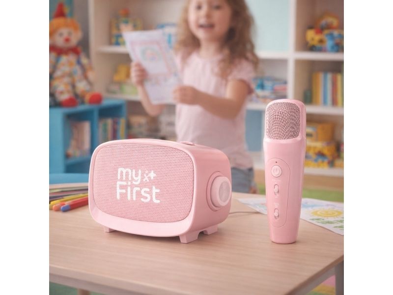 Introducing the myFirst Voice 2 - Interactive Voice Recorder with Touch Screen for Kids a delightful and versatile gadget designed to spark creativity and provide endless entertainment for children. Combining a powerful wireless speaker and dynamic microphone capabilities this innovative device is perfect for interactive play and storytelling. With easy connectivity options and fun voice-changing filters it transforms any environment into a lively karaoke session or imaginative playground.Dynamic Voice ModesCrystal Clear Sound QualityCompact and Portable DesignWireless Music PlaybackVoice and Reverb ControlDynamic Voice Modes With myFirst Voice 2 children can explore a variety of entertaining voice modes at the touch of a button. The device's AI Voice Changing Technology effortlessly transforms their voice into different characters offering endless creativity for storytelling and interactive play. The modes available include normal elderly childlike cute and deep each providing a distinct sound experience that brings stories to life. Crystal Clear Sound Quality Designed to deliver exceptional audio performance the myFirst Voice 2 ensures every note and word is heard with clarity. The separation of the microphone and speaker results in high-quality sound output while the echo enhancer adds depth making every performance stand out. Special vibration bass technology further enriches the sound providing an immersive experience for listeners. Compact and Portable Design The myFirst Voice 2 is compact and lightweight making it simple for kids to handle and transport wherever their adventures lead. This portable design ensures children can enjoy entertaining activities on the move transforming any space into their personal sound stage for endless enjoyment. Wireless Music Playback The device supports wireless music playback through Bluetooth connectivity or a micro SD card giving kids the freedom to listen to their favorite tunes with ease. This versatile feature allows them to play music without the hassle of physical connections enhancing their entertainment options. Voice and Reverb Control With intuitive voice and reverb control children can fine-tune their sound to suit their preferences. These controls enable them to experiment with various effects adding a touch of magic to their performances and making each interaction as unique as their imagination. Package includesmyFirst Voice 2 - PinkUSB-C charging cableUser manualProduct specificationsColour: PinkSpeaker model: 52 mm/4 OhmWeight: 287 gramsSpeaker output: 5 wattsTransmission frequency: 2.4 GHzBattery capacity: Speaker- 1200 mAh microphone-500 mAhMaximum volume working time speaker: 110 minutes microphone: 6 hoursCharging time 75 minutesUSB-C charging: 1A (DC 5V)Connection distance: 10 metersBluetooth Connectivity: BT 5.0Audio Jack: 3.5 mm AUX