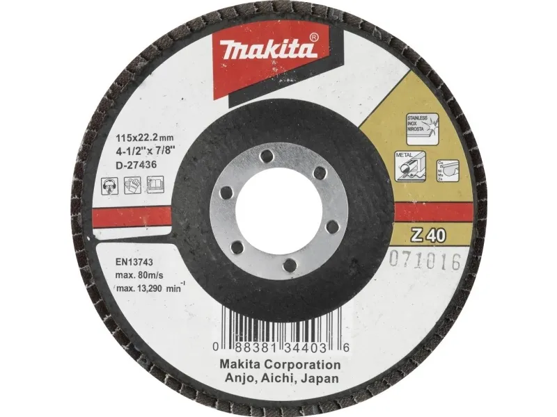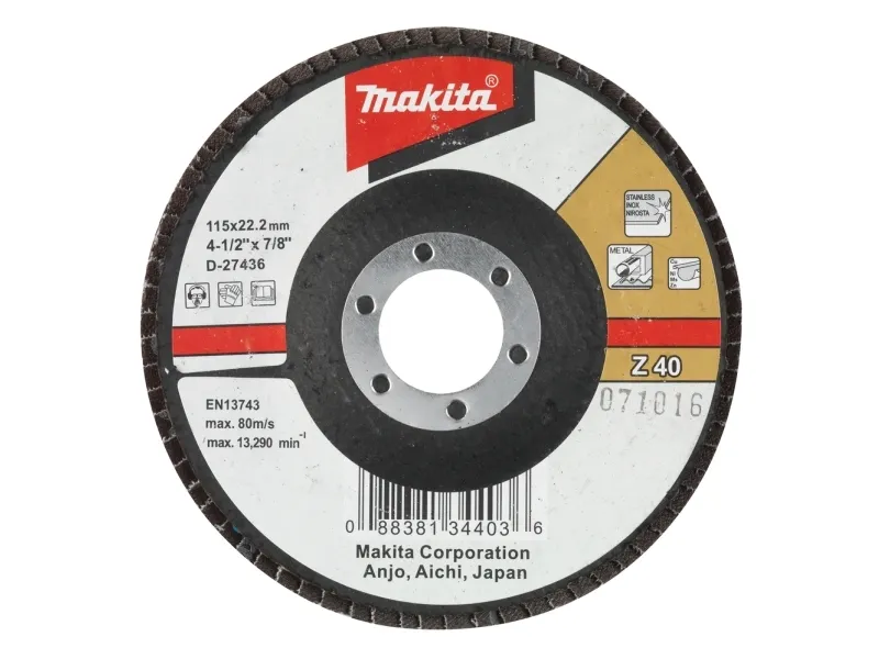 Ruden består af zirkonium-aluminiumoxid og har en groft 40korn. Skiven er robust og har dermed en længere funktionstid. Den egner sig ideal til bearbejdning af stål og kan også anvendes i rustfrit stål og NE-metaller. Takket være den vinklede form er skuffen meget effektiv ved vinkler og hjørner.