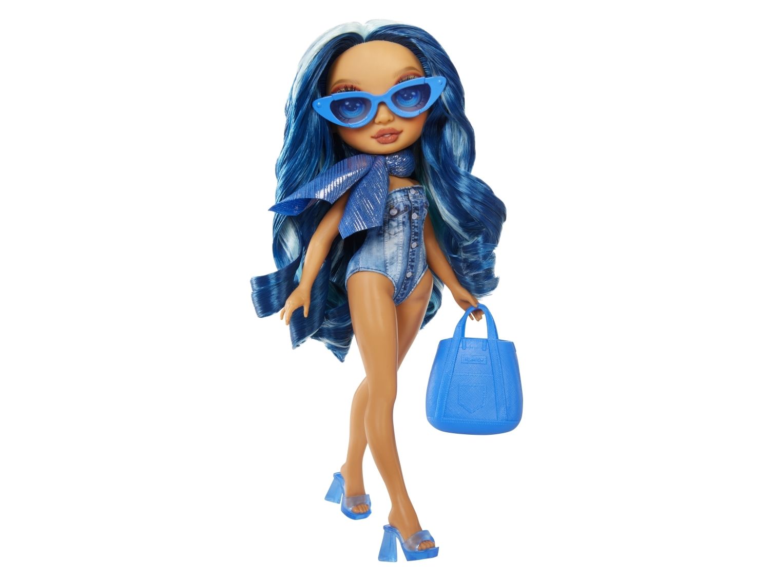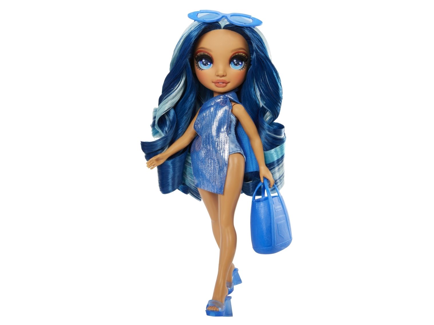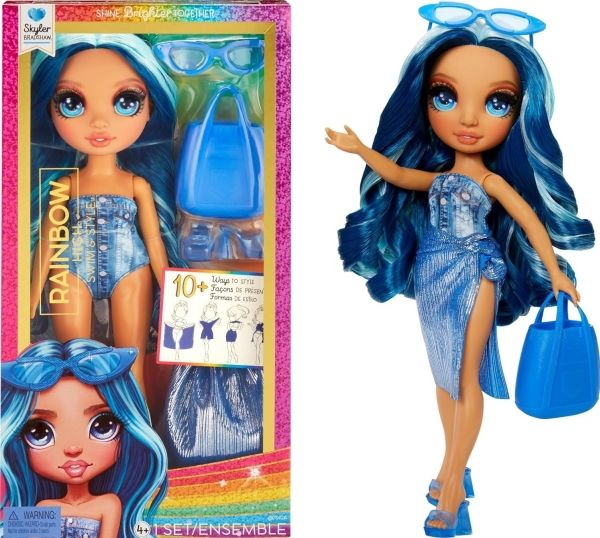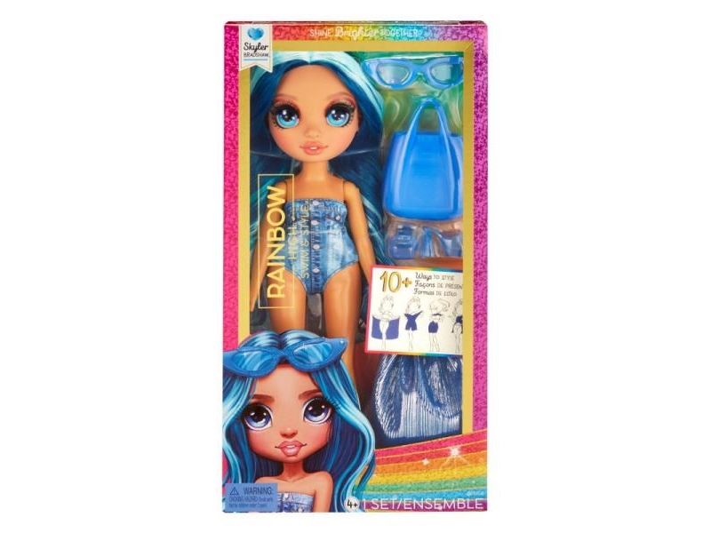 Rainbow High Swim & Style Skyler - Doll with Shimmery Wrap - blå