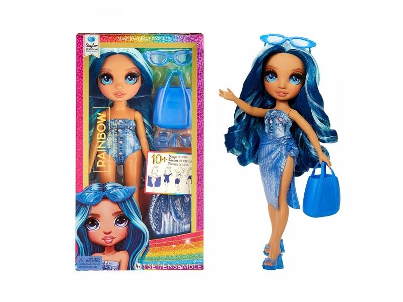 Skyler from the Rainbow High Swim & Style collection is a captivating doll designed for creative play. This doll features a shimmery wrap that adds a touch of style and flair, encouraging imaginative storytelling and exploration for children aged 4 years and up. The design promotes the development of creativity as kids can mix and match outfits and accessories, bringing their unique visions to life. With vibrant colors and engaging accessories, Skyler is perfect for sparking joy and inspiration. Children are invited to dive into a world of fashion and fantasy, allowing them to create endless scenarios. Whether it's a day at the beach or a fun pool party, this doll promises hours of play while enhancing imagination.