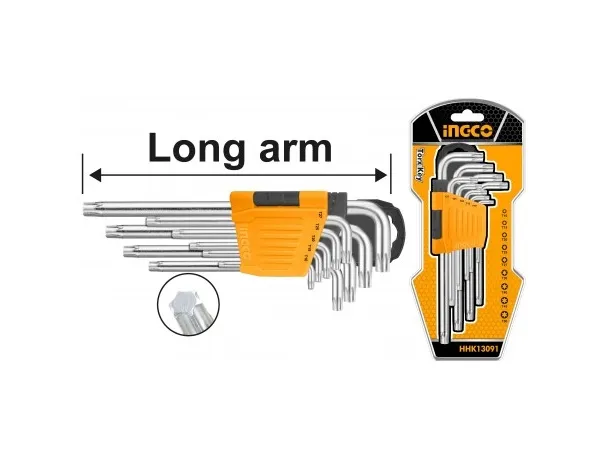 Ingco HHK13091, L-formet hex-nøkkelsett, Metrisk, 9 stykker, Kromatering, 10,15,20,25,27,30 mm