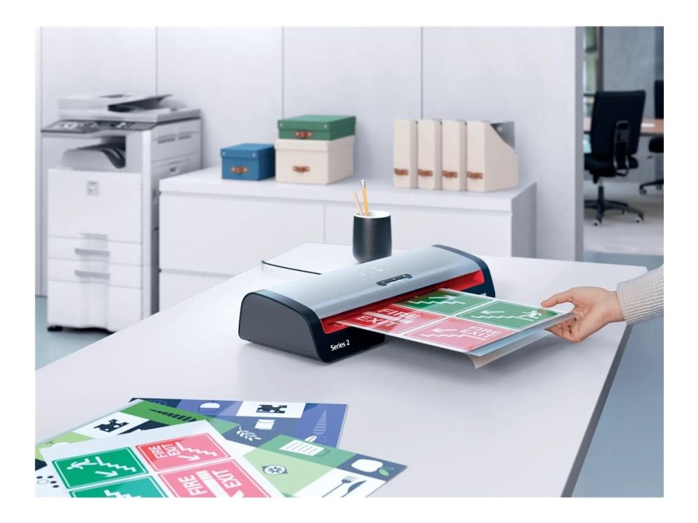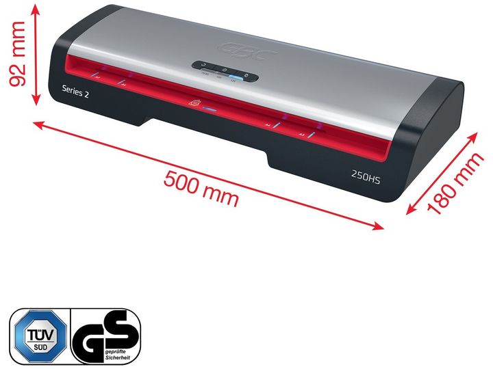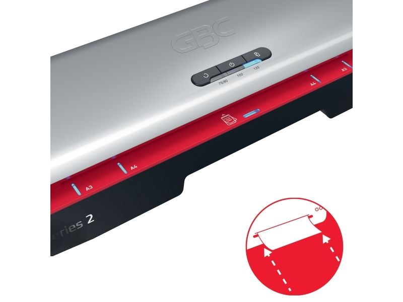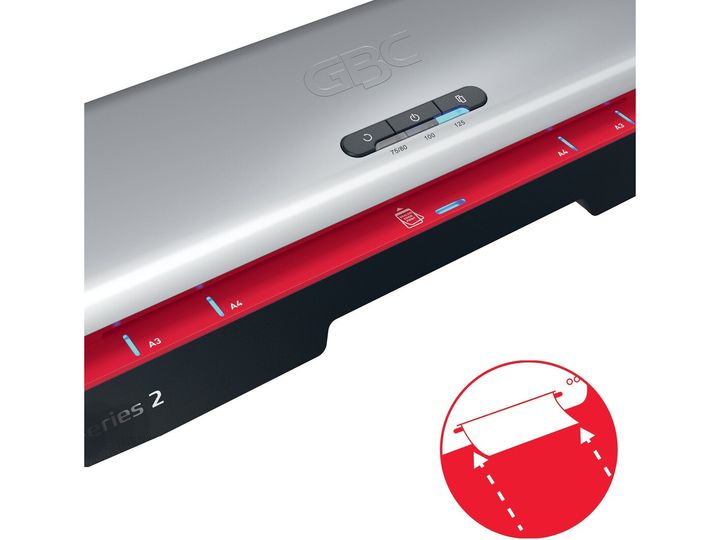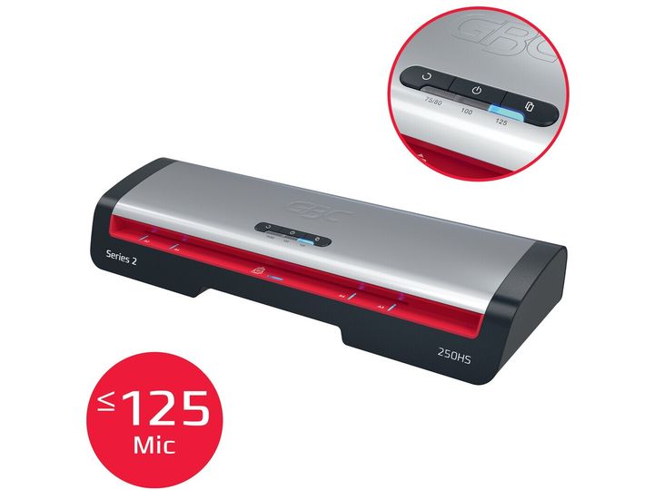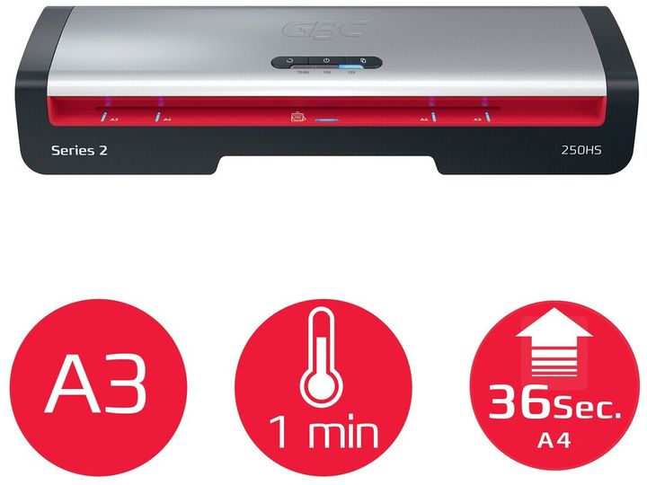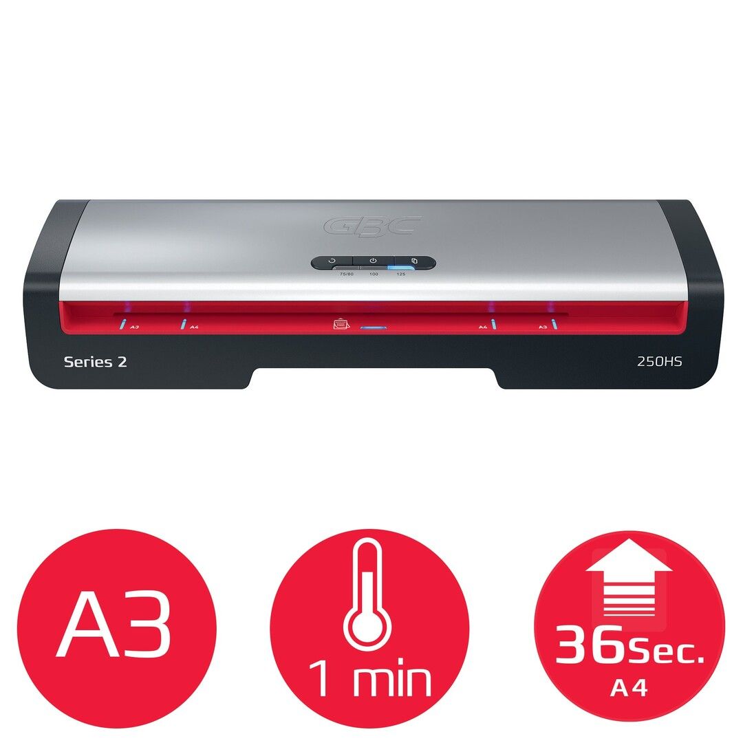 The GBC Series 2 250HS laminator is designed to elevate your laminating experience with reliable heat technology. Achieve professional results with a maximum working width of 33 cm and speed of 50 cm/min, accommodating various projects up to A3 size. With a warm-up time of 1 minute, the device ensures efficient operations, allowing you to handle tasks with ease and speed.