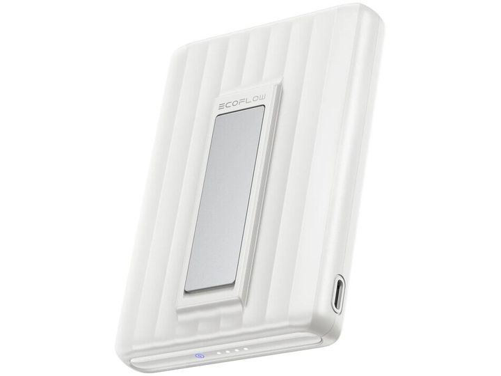 EcoFlow RAPID Mag 10K er en ultratynn og lett powerbank med kapasitet på 10 000 mAh – perfekt for lommen eller vesken. Den lader iPhone 12–16 trådløst (Qi 7,5 W) med et sterkt magnetfeste og tilbyr hurtiglading via USB-C (30 W inn/ut) – opptil 50 % lading på omtrent 49 minutter. Godkjent for flyreiser (38,7 Wh) og utstyrt med et 60° støttebein for håndfri bruk. X-Cooling-teknologi holder overflaten kjølig (≤38 °C), og pass-through-funksjonen lar deg lade både powerbanken og enheten samtidig. Robust design med 1 m fallbeskyttelse.