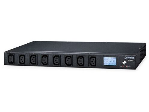 IP-based 8-port Switched Power Manager with 2 Cascaded Ports (AC 100-240V, 16A max. input, 8 IEC C13 outlet 10A max. output, LCD Displays, provides external tem