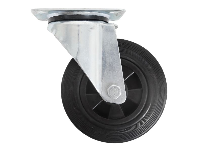 Hjulene i sort plast er velegnede til hårde gulve, trægulve og tæpper med kort luv.