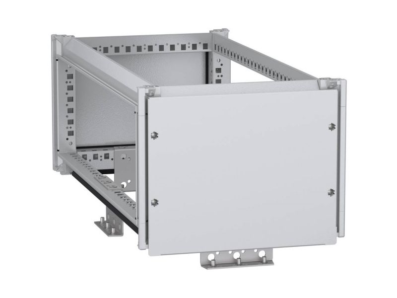 Øverste samleskinnekammer, PanelSeT SFN, til elektrisk kabinet B 400 x T 800 mm, IP55 Denne øvre samleskinnekammer er et strømfordelingstilbehør, der er monteret på PanelSSET SFN's standerkabinet af decarboniseret stål. Den indeholder genvundet stål, der fremstilles med vedvarende energi, hvilket medfører was l-emissioner. Den har en nominel højde, -bredde og -dybde på 300 mm, 400 mm eller 800 mm. Rammen og kamrenes støtter er fremstillet af galvaniseret stål for at sikre en lang levetid. Panelerne er fremstillet af stålplade. En epoxy-polyester-pulverlakering sørger for et plan udseende. Kammeret har en grå (RAL 7035) farve med sort greb (RAL 9005). Det leveres med en tætning, for- og bagvæg og fire øskenskruer. Kammeret har beskyttelsesklasse IP55, det vil sige, den er modstandsdygtig mod indtrængning af støv, vand og olie. Kabinettet er desuden stødfast og har en IK10-klassificering. Betjeningen er nem takket være adgangen bagfra, forfra og fra siden.