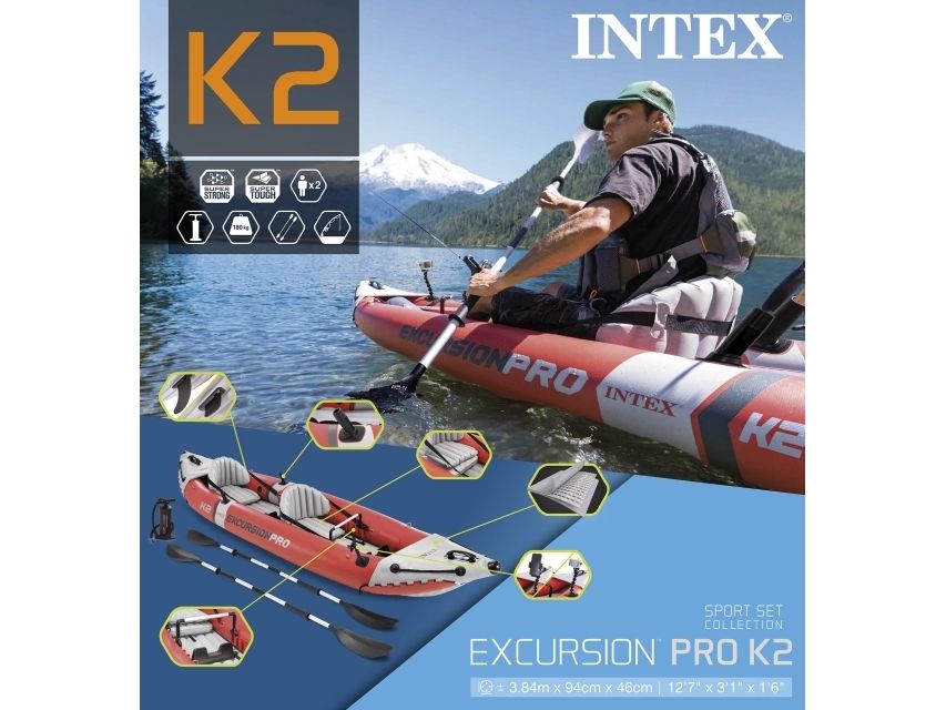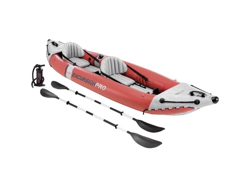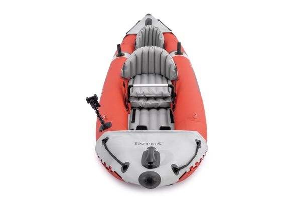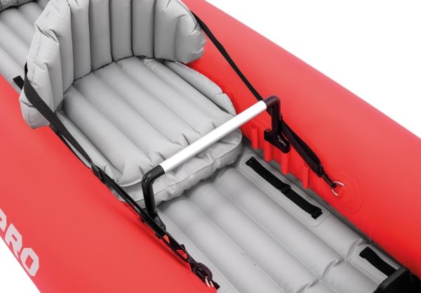 Supersterk, sikker og manøvrerbar tomannskajakk. Her får du en tomannskajakk i en super slitesterk 3-lags laminatkonstruksjon og et supersterkt PVC-materiale, som gir overlegen styrke og motstand mot både rifter og sollys. Høytrykksoppblåsing gir kajakken ekstra stivhet og stabilitet, og de fjærbelastede høytrykksventilene gjør den enkel å blåse opp samt rask å tømme for luft. - to årer 218 cm - pumpe - to spesialdesignede avtakbare finner gir optimal manøvrerbarhet på dypt og grunt vann - to fotstøtter montert på bunnen - to avtakbare fiskestangholdere - avtakbart og justerbart kamera og mobilholder - gripetau i begge ender - to justerbare, koppformede seter - oppblåsbare seteputer for hevet sete - oppbevaringsplass i baugen og hekken med D-ringer i rustfritt stål for feste av bagasje og utstyr - TUV godkjent - reparasjonslapp