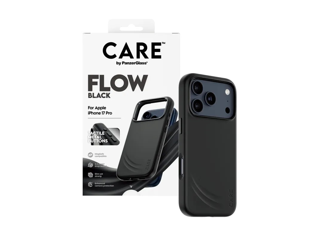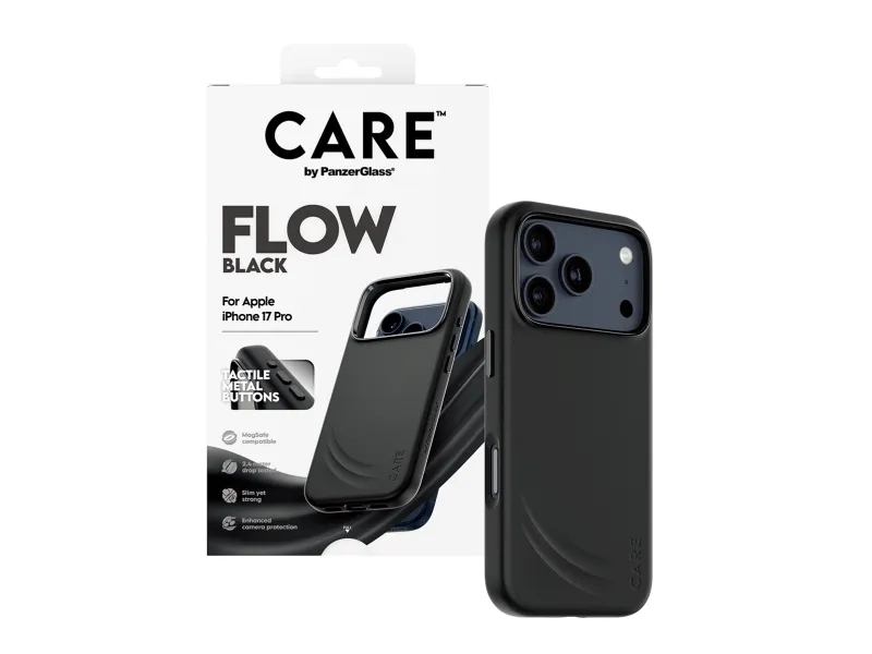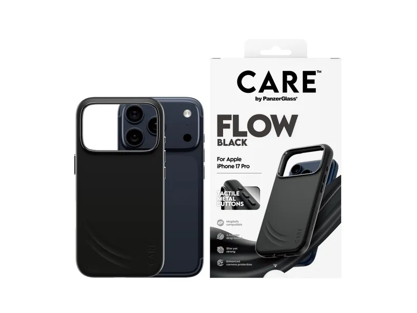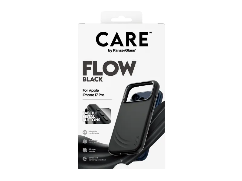 Feel the flow! The CARE by PanzerGlass Feature Flow Case with MagSafe is more than just a pretty face – it's your phone's new best friend. The case is made with 60% recycled silicone and a soft-touch coating to wrap your device in everyday elegance and eco-love. Inside, a velvety microfiber lining gives your phone the care it deserves, while the raised bumper keeps your screen protected from fatal face-down falls.But it's not just about the looks. The scratch and shock-resistant design means you can dance through life without worrying about scratches or tumbles. Every angle and corner has been drop-tested at 3.6 meters – so go ahead and live a little louder.MagSafe compatible? Absolutely. Camera lens protector friendly? Of course. Power bank magnetic connection? No problem. This case is designed for real life – yours.DARE TO CARE CARE is a playful and protective international tech and lifestyle brand featuring a range of products created using the highest quality materials and influenced by fashion, art, and music. We care about people and the world we live in. We care about sustainability and self-expression. And we care about tech and extending its lifetime. So protect your tech in style and show the world you CARE.