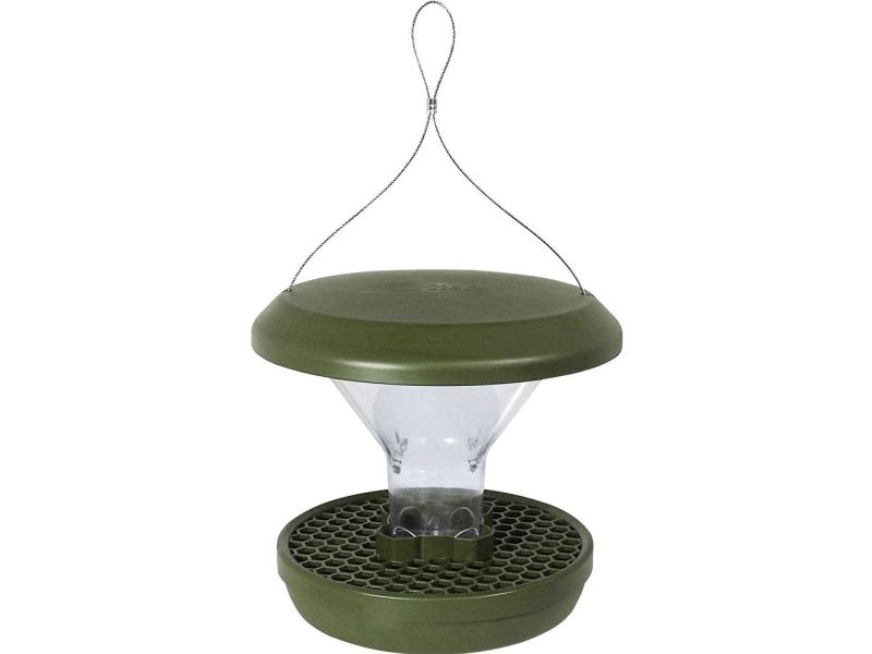 Struktureret og hygiejnisk design med fange-hunde forhindrer, at fuglefoder falder på gulvet. På den måde kan fugle fodres målrettet, mens gnavere, såsom mus og rotter, løber tør.