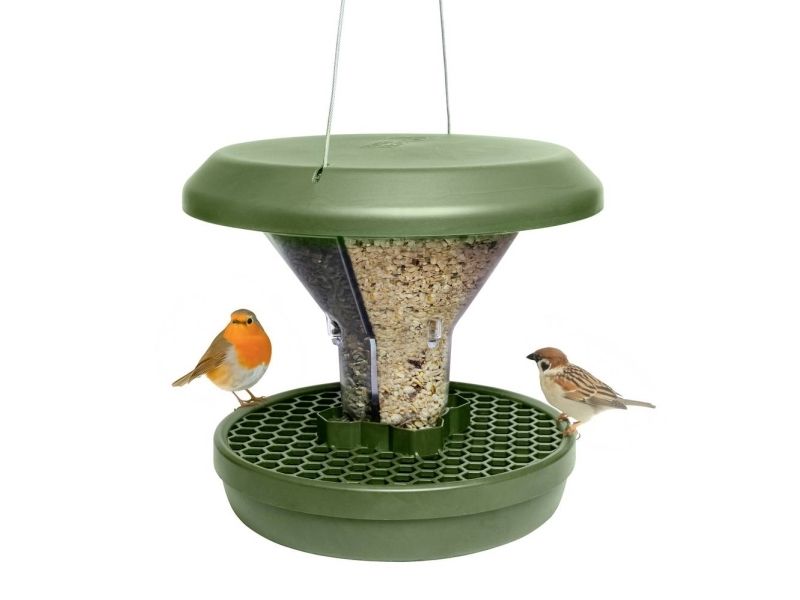 Med to separate foderbeholdere sikres fuglefoder med forskellige fodertyper samtidigt.
