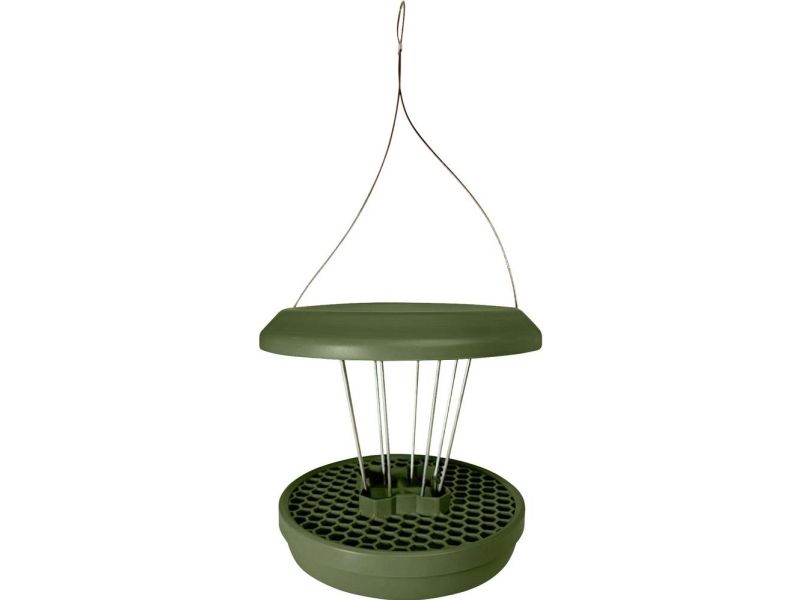 Struktureret og hygiejnisk design med fange-hunde forhindrer, at fuglefoder falder på gulvet. På den måde kan fugle fodres målrettet, mens gnavere, såsom mus og rotter, løber tør.