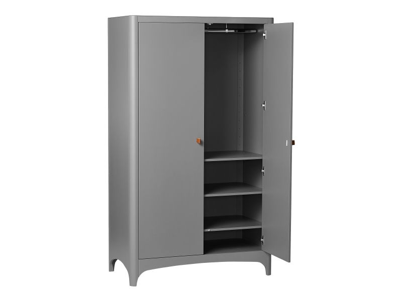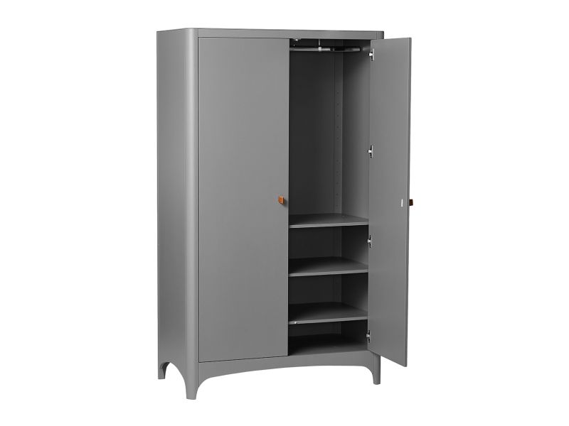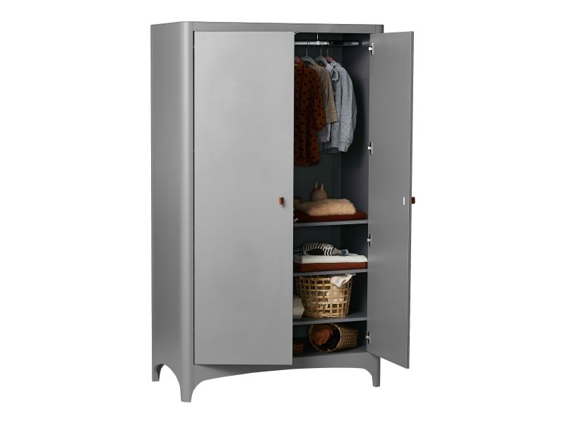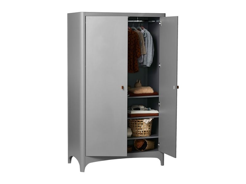 Hold orden på børneværelset med det smukke og rummelige Leander Classic™ garderobeskab. Med sine ikoniske buer og afrundede hjørner matcher garderobeskabet det unikke designsprog, som Leander Classic™ serien er kendt for. Skabet er godt indrettet med en bøjlestang til bøjler samt tre dybe hylder med god plads til opbevaring af tøj og tilbehør. Skabet har bløde lædergreb, der nemt kan skiftes til andre farver eller filtgreb, så du får dét udtryk, der passer til din stil. Skab et komplet børneværelse ved at tilføje andre møbler fra Leander Classic™ serien, eksempelvis baby-juniorsengen og kommoden. Udnyt pladsen i skabet optimalt ved at tilføje Leanders praktiske opbevaringsbeholdere. Opbevaringsbeholderne monteres på indersiden af skabslågen og giver dig ekstra plads til diverse tilbehør.