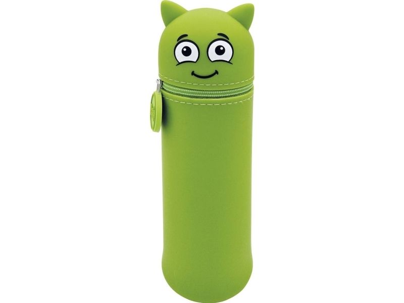 MARKY C169878 - fjederpenalhus i emoji-design, blødt og slidstærkt silikone, plæneklipper til stifter, pennhus, penneholder, grøn