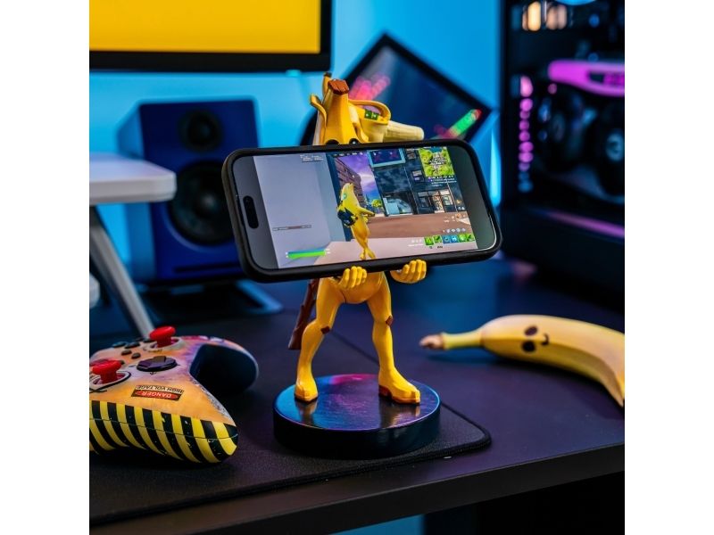 Sig hej til Peely Cable Guy – den gule Fortnite-helt. klar til at holde dine enheder sikkert og med stil! Perfekt til fans. der vil have både sjov og funktion i deres gaming-setup. Med sit banansmil og robuste design er Peely mere end et stativ – han er din trofaste gaming-buddy!