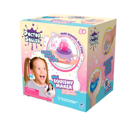 Nu kan du lave dine helt egne sjove og farverige squishies med Doctor Squish Squishy Mini Maker. Fyld boldene med vand, tilføj det medfølgende konfetti – eller brug dine egne kreative idéer med glimmer, slim eller andet blødt og sjovt materiale (med tilladelse fra dine forældre). Brug de genanvendelige clips til at lukke squishien og lav en ny igen og igen!