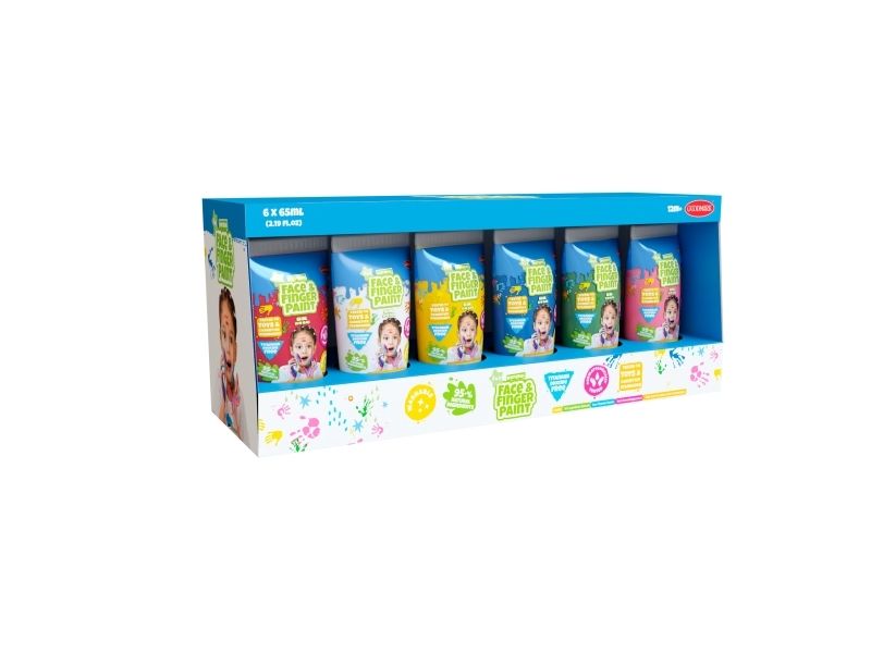 Slip kreativiteten løs med denne farverige pakke ansigts- og fingermaling! Indeholder 6 sjove farver lavet af 95 % naturlige ingredienser. Blid mod huden. let at vaske af og fri for skadelige stoffer som titaniumdioxid. Testet og godkendt efter legetøjs- og kosmetikstandarder – perfekt til små kunstnere!