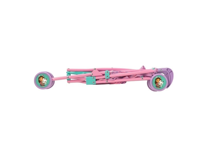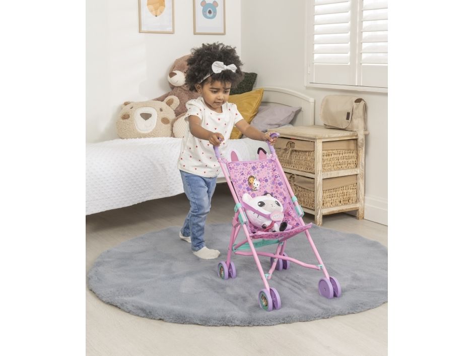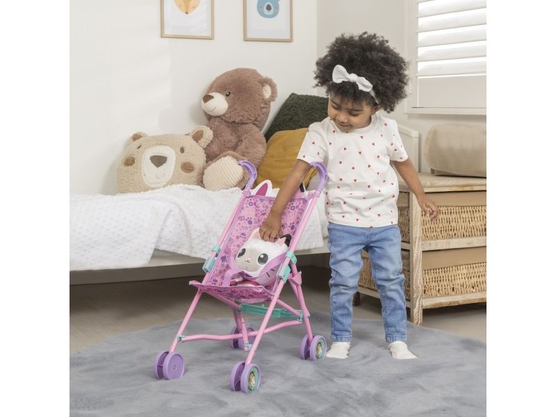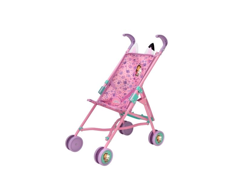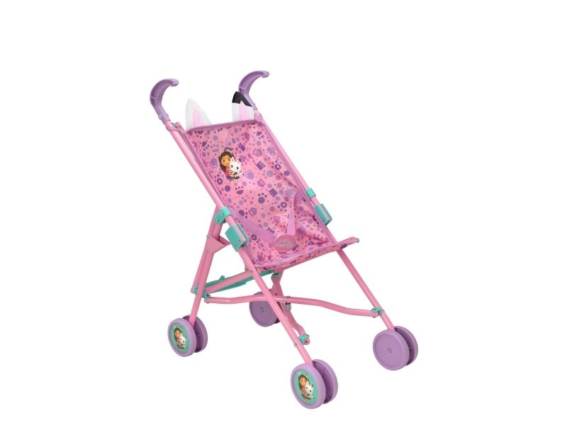 Dockparaplyvagnen med Gabby's Dollhouse-tema är dekorerade med bilder på Gabby och hennes kattvän, ett härligt tassavtryck och roliga kattöron. Den hopfällbara vagnen passar dockor som är upp till 45 cm långa. Höjd 51 cm. 2+