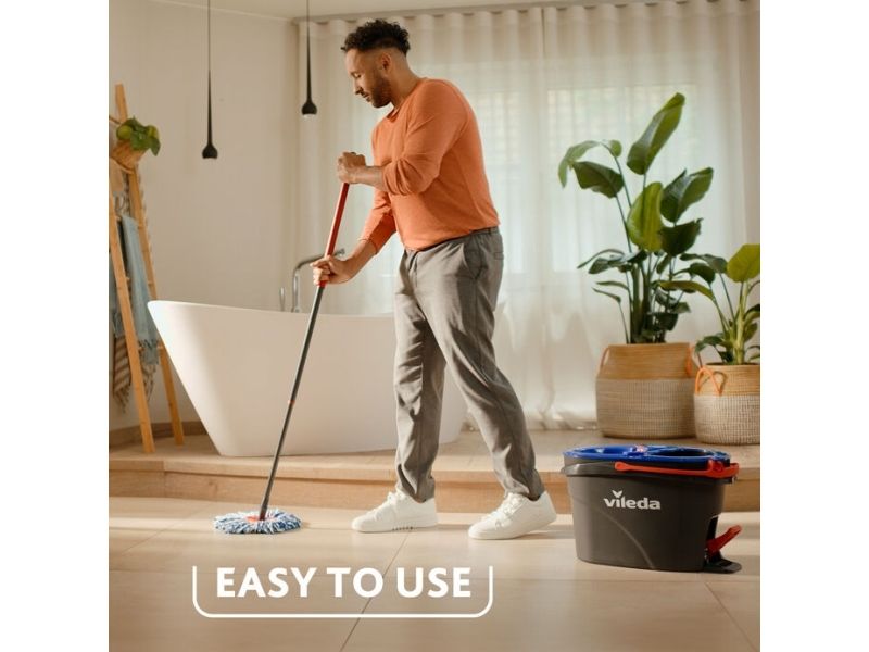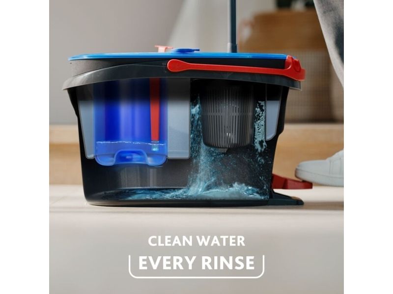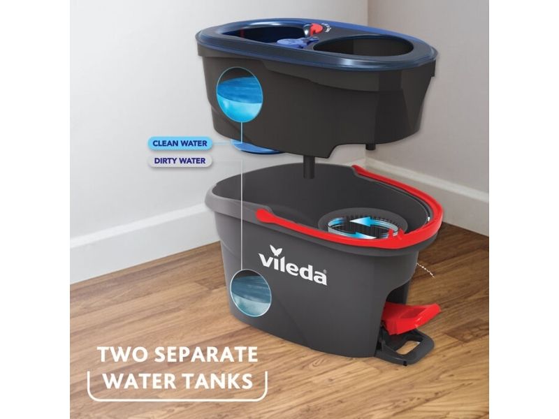 Den innovative spand med ekstra påfyldningssystem holder rent og snavset vand adskilt fra hinanden. Således aftørres du altid med frisk vand og sørger for en mere effektiv og hygiejnisk rengøring af dine gulve.