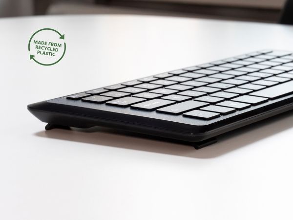 If you're frequently on the move and need access to a sleek keyboard that doesn't take up much space on your desk - then Type Mini is the right choice for you. Type Mini is designed in Sweden, made from recycled plastic, and designed to provide you with an ergonomic hand position while working. With the foldable support legs, you can easily adjust the height both at the front and back, by 5 or 8 mm, to find your ideal hand position.